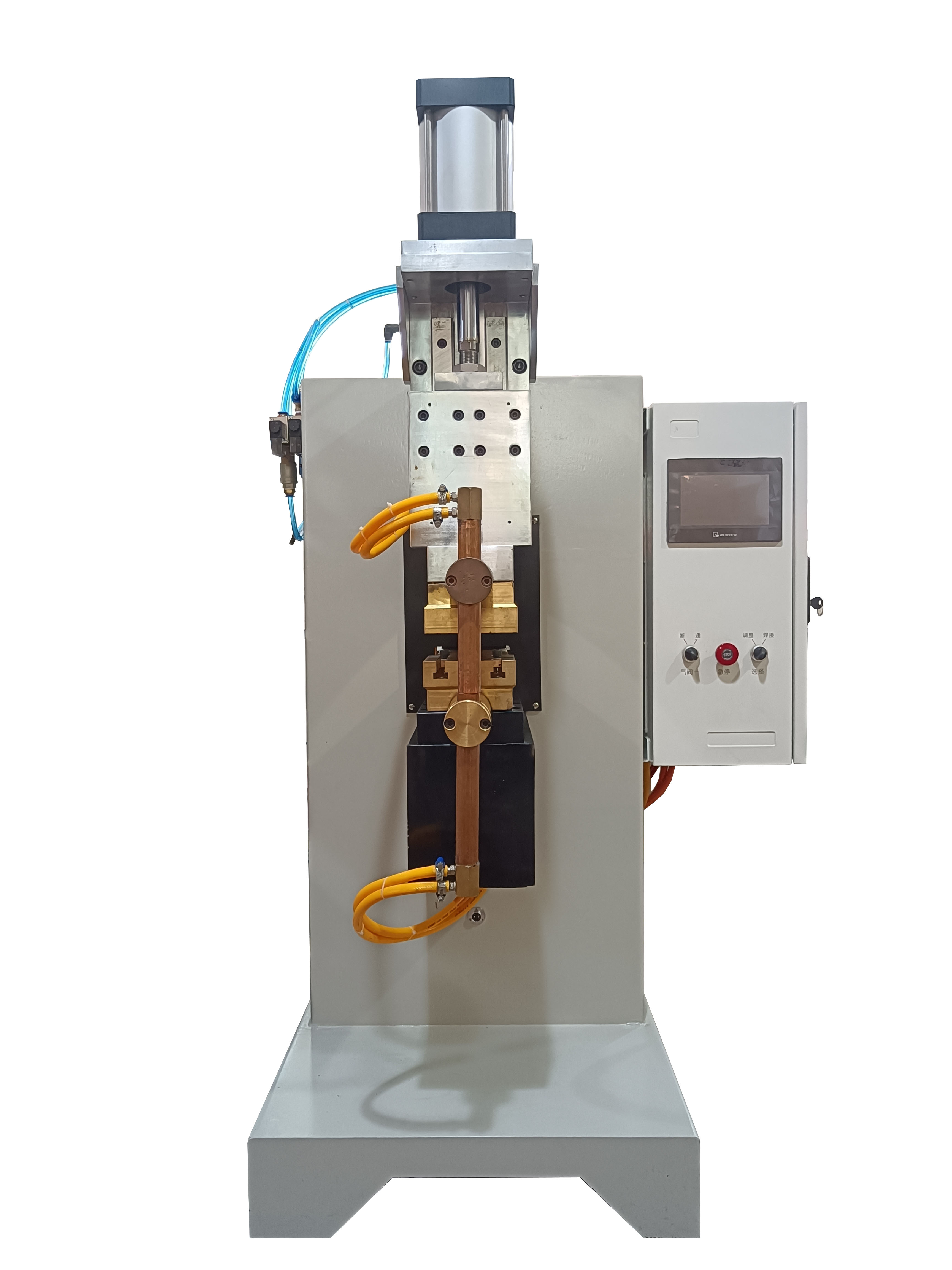 2、打開點焊機電源,通氣,通水,蘇納爾提醒大家一定不能忘記通水,這不但會影響產品的焊接質量,同時也影響點焊機的使用安全和使用壽命。