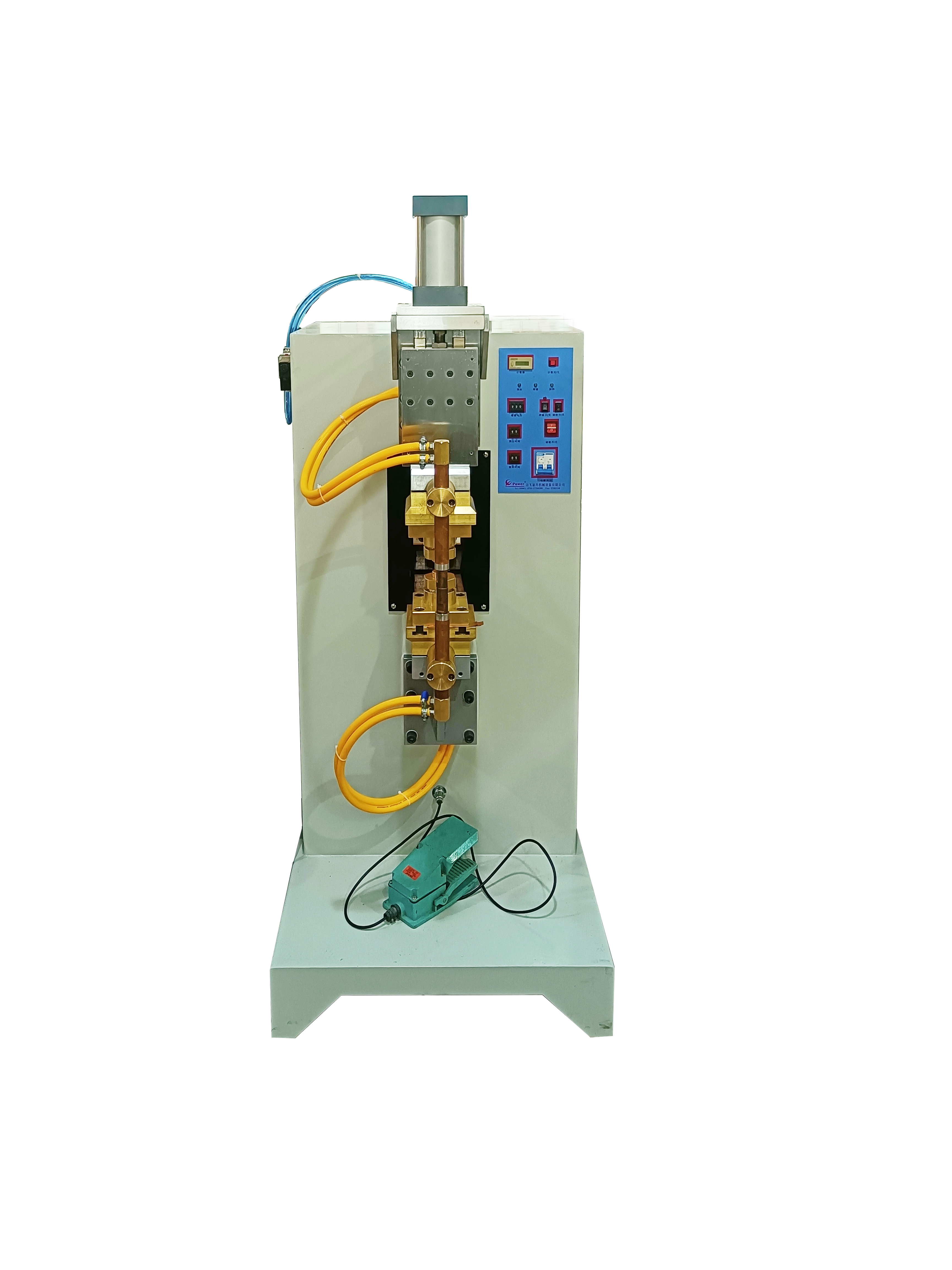1,點焊機使用前,首先要調整好電極位置,使上下電極頭在一個軸心,這樣才能保證電流回路的形成,并在工件接觸面上順利形成焊點。