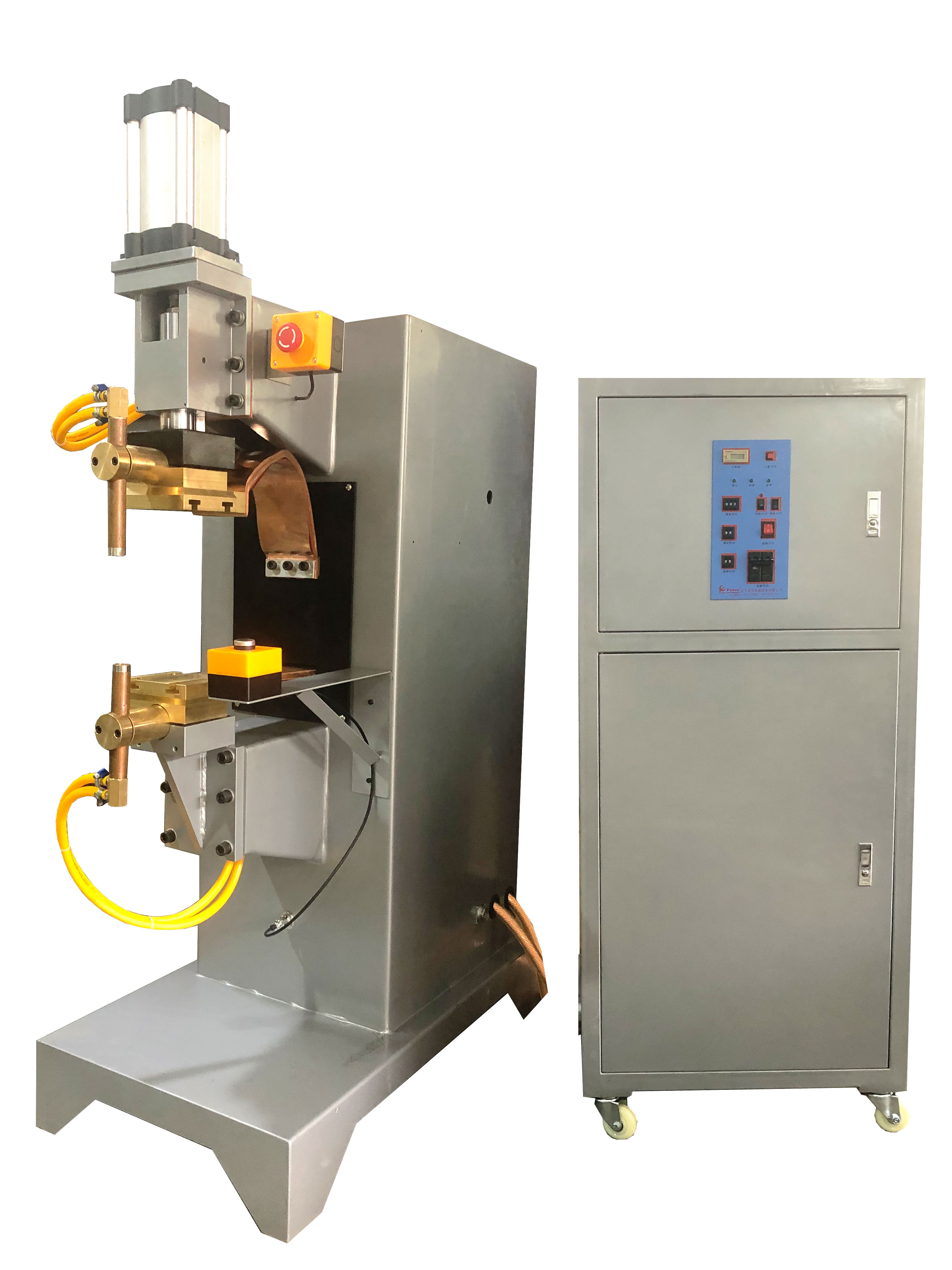 點焊機又叫碰焊機,一般指電阻焊機。根據電源分為交流點焊機、中頻點焊機、儲能點焊機、單/三相次級整流點焊機。