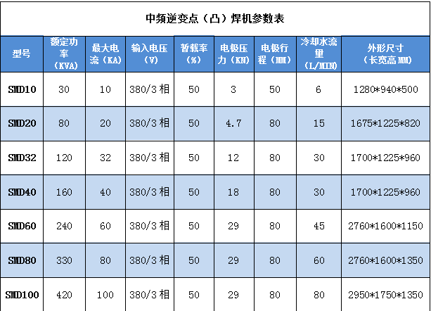 工頻交流焊機的變壓器鐵心較大,同樣功率條件下,工頻交流焊機比較笨重,而逆變直流電阻點焊機變壓器體積小輸出能量大,設備輕巧,移動方便。
